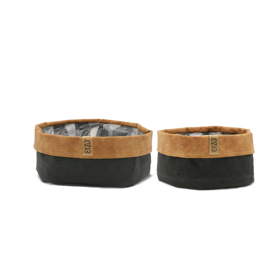 SIZO Papiertasche Schwarz mit Lederrand