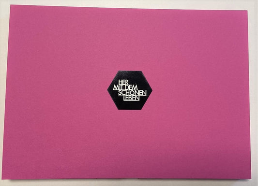 HER MIT DEM SCHÖNEN LEBENL - Holzschrift in hochwertigen Kartonrahmen pink 21x15 cm