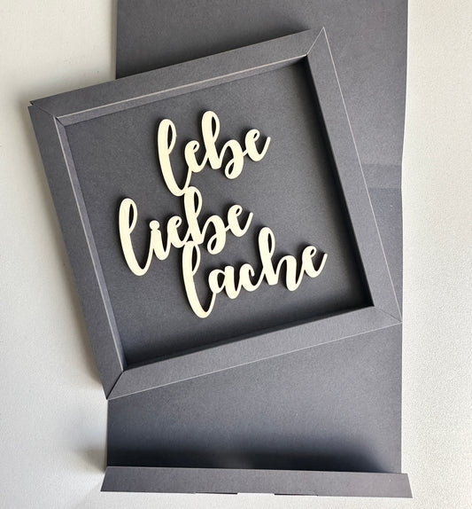LEBE LIEBE LACHE - Holzschrift in hochwertigen Kartonrahmen 14cm