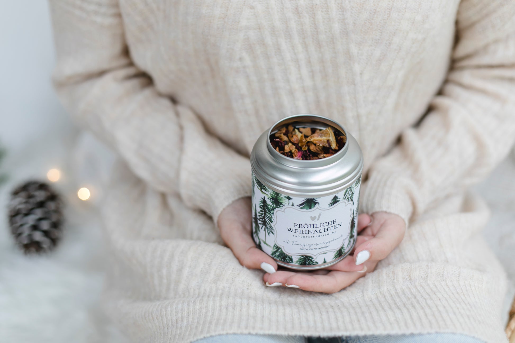 Mit diesem weihnachtlich-süßen Früchtetee machst du deinen Liebsten oder dir selbst ein liebevolles Weihnachtsgeschenk. Der Feuerzangenbowle-Geschmack des Tees sorgt für eine besinnliche Weihnachtsstimmung in der Adventzeit oder an Heiligabend. Der Weihnachts-Tee wärmt von innen und sorgt für weihnachtliche Stimmung. Perfekt für einen Tee zur Weihnachtsjause mit selbstgebackenen Keksen.